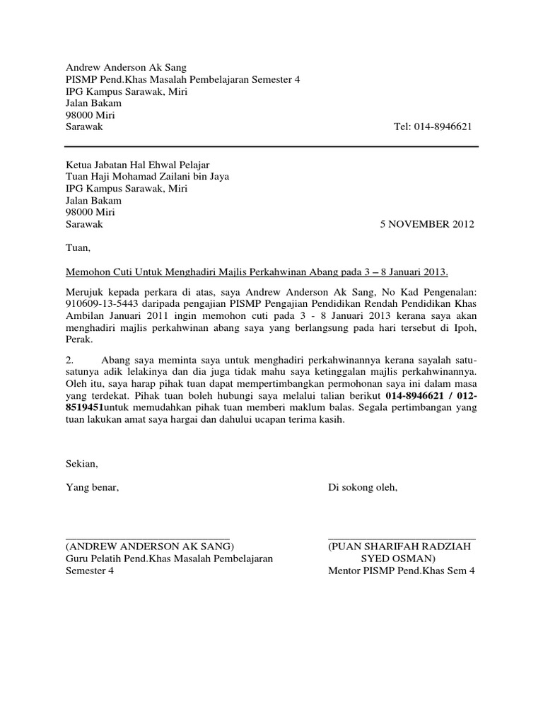 Surat Mohon Cuti Kahwin Baru Letter Website